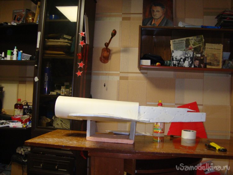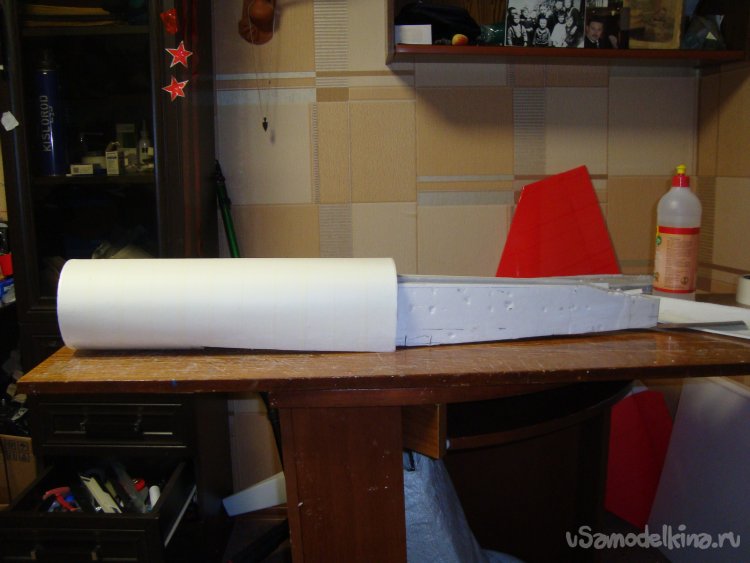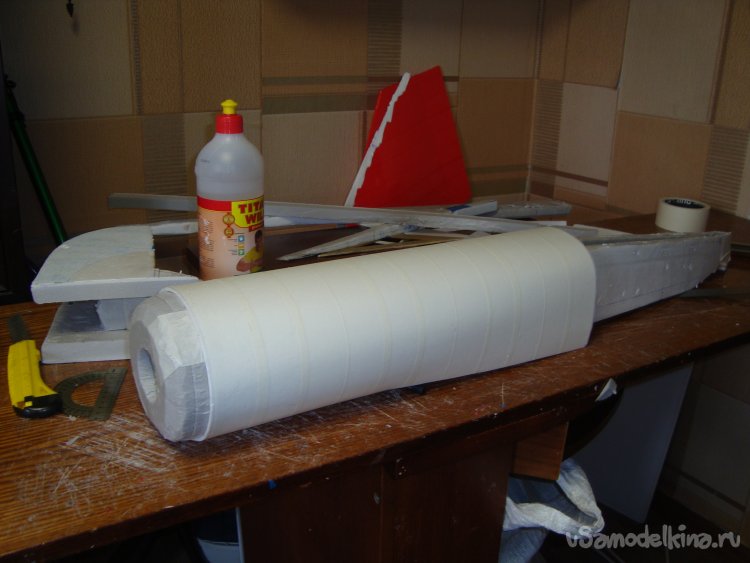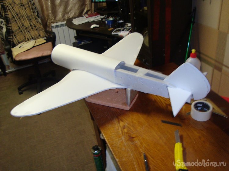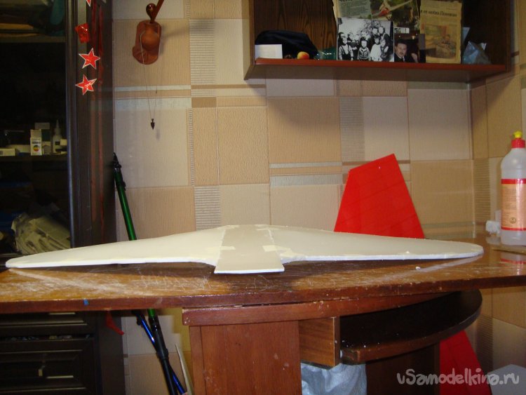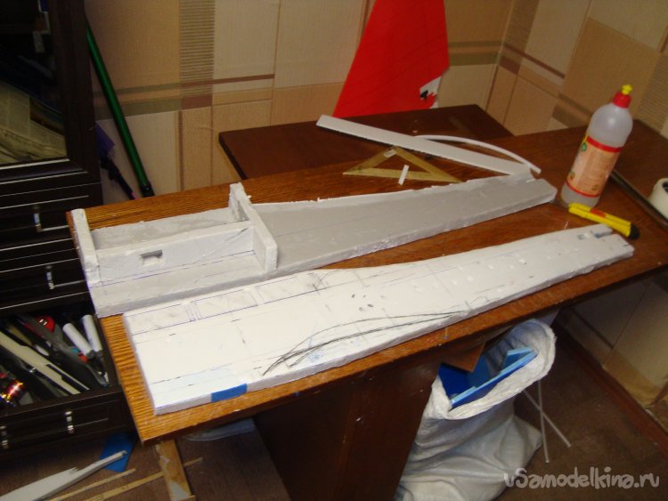 Как поётся в известной песенке: - «Я его слепила из того, что было…». Так и я начал делать свою новую авиамодель из остатков белой, гладкой потолочной плитки.