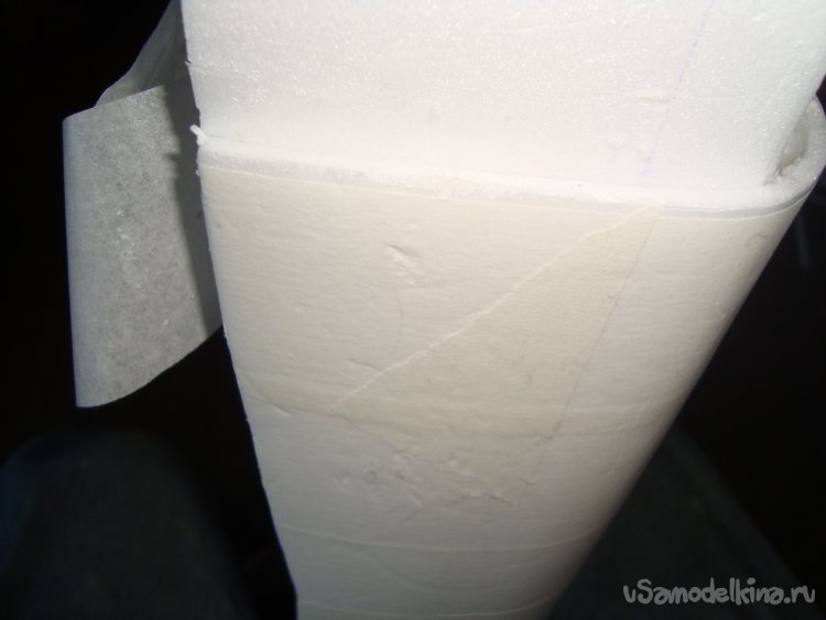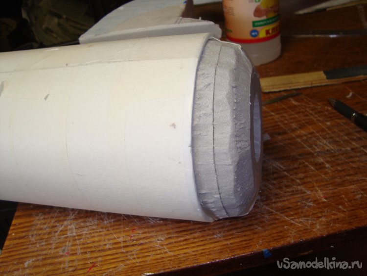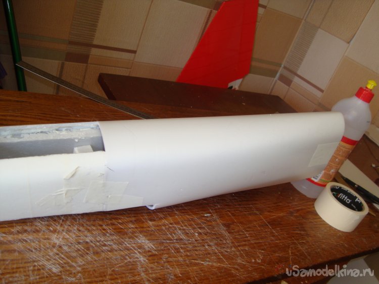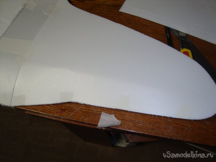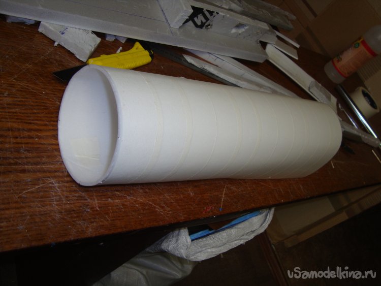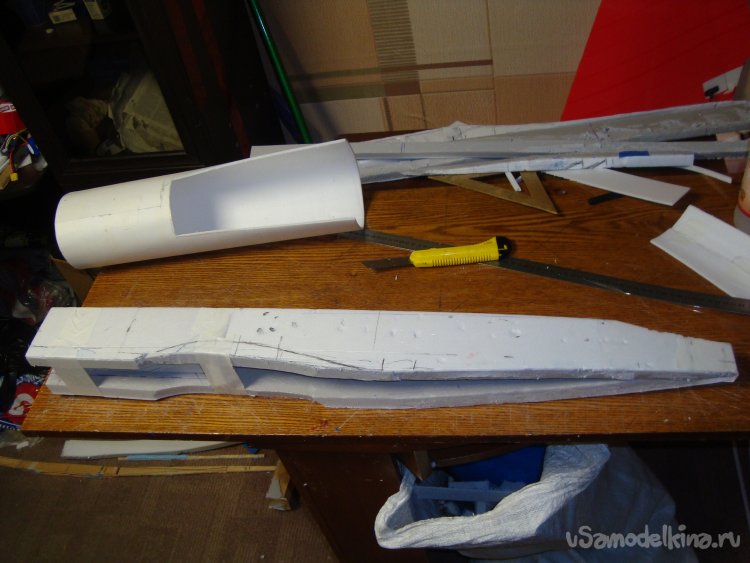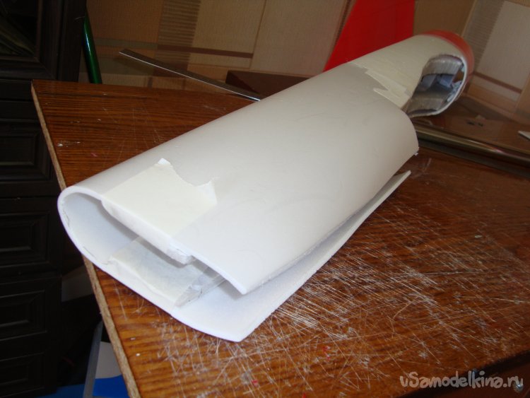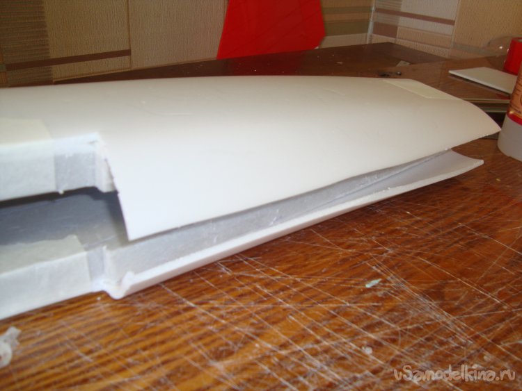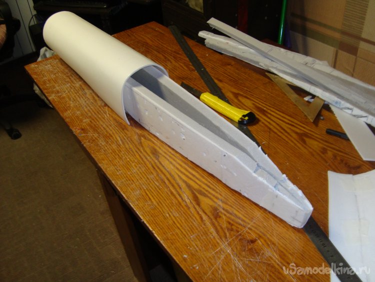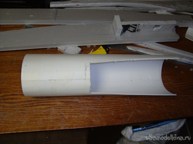 Из потолочки склеил заготовку внешней обшивки носовой части фюзеляжа.