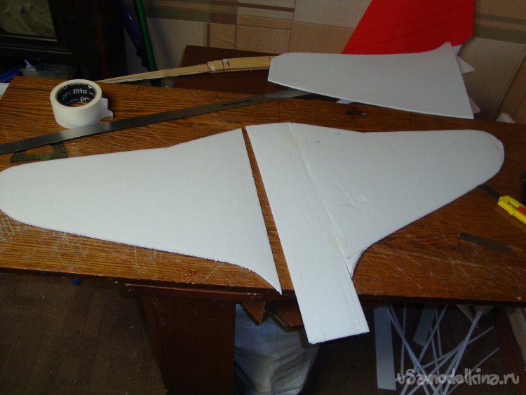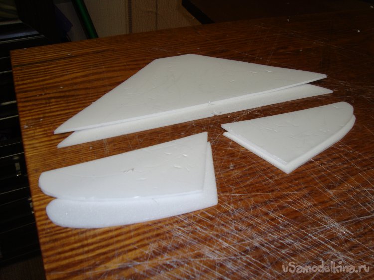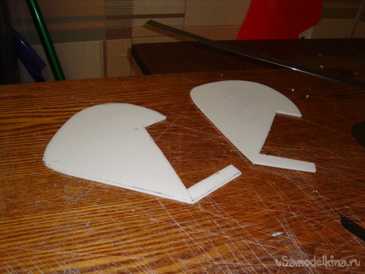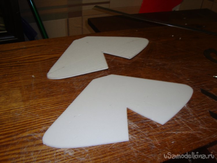 Вырезал заготовки для стабилизатора с рулём высоты и киля с рулём направления.