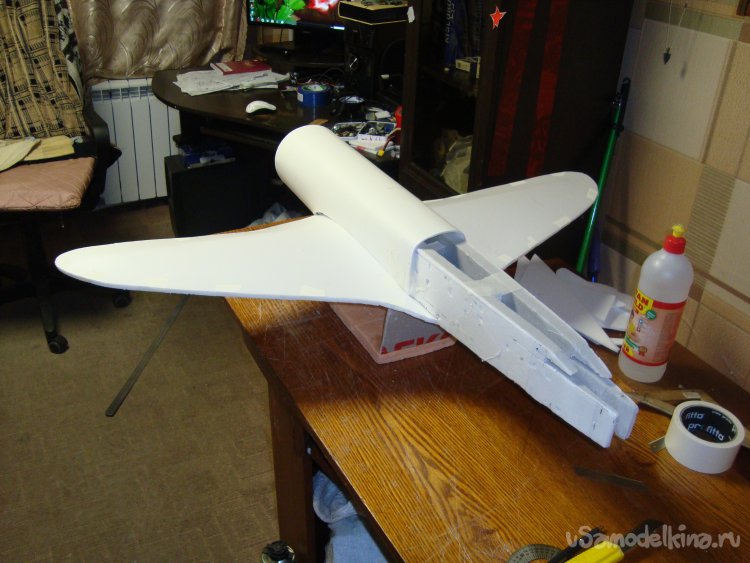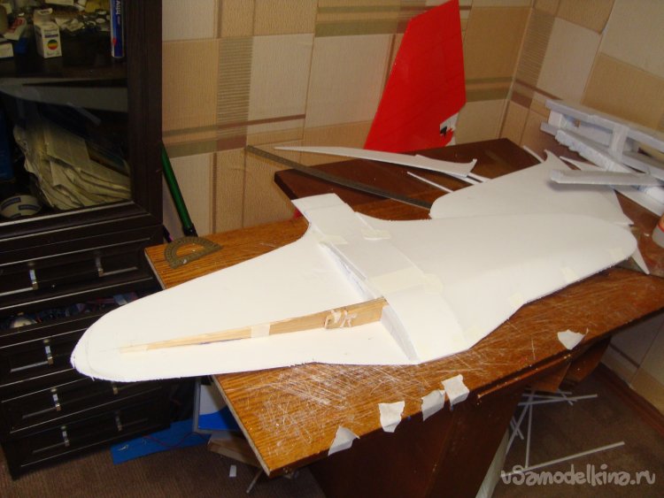 Примерил крылья и хвостовое оперение, подогнал.