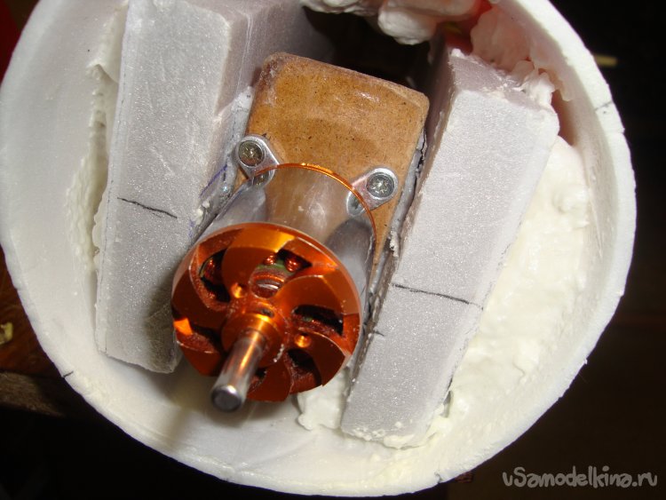 Вклеил кусок ДВП(оргалит) и установил мотор.