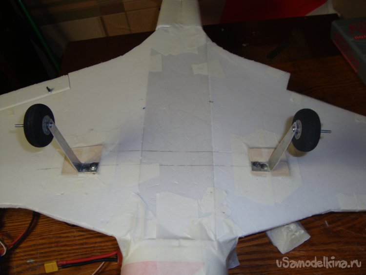 В места установки шасси, вклеил кусочки 3 мм фанеры.