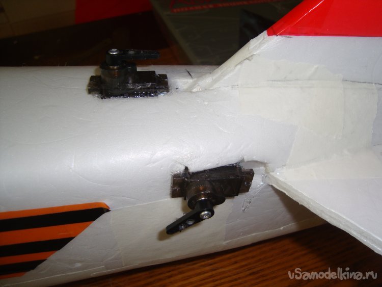 Смонтировал сервомашинки для руля высоты и руля направления