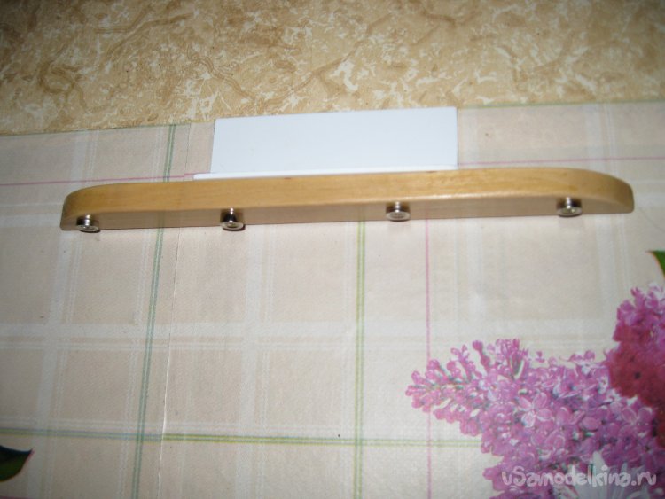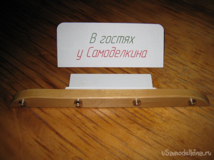 Еще в мастерской я слегка обработал эту дощечку наждачной бумагой, а уже дома покрыл ее двумя слоями лака по дереву.