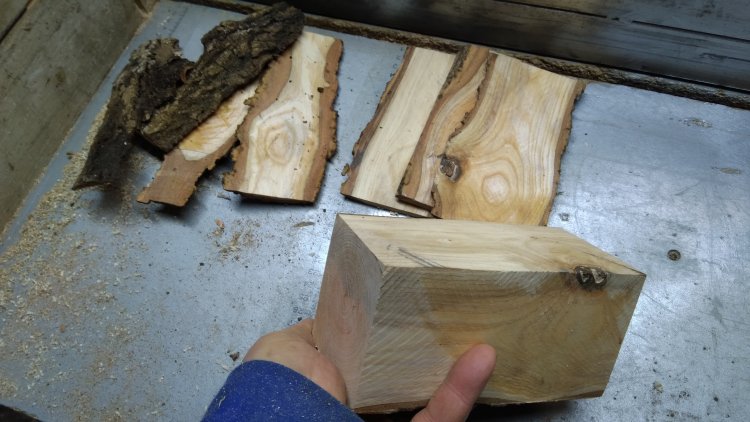 Кусок ветки непонятного дерева, по коре как шелковица, по структуре было непонятно, но при высыхании похоже на ясень, хоть я и не уверен.