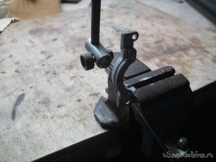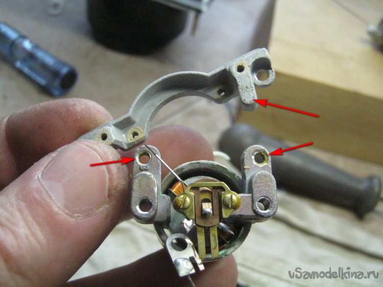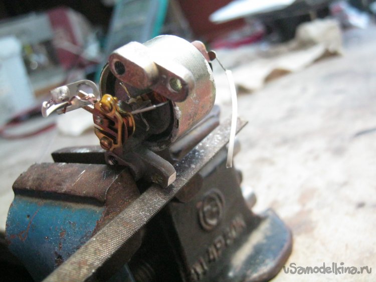 Фото 11. Крепежные рожки – проушины, подпилил плоским надфилем, зажав механизм в настольных тисках так, чтобы внутрь не падали опилки.
