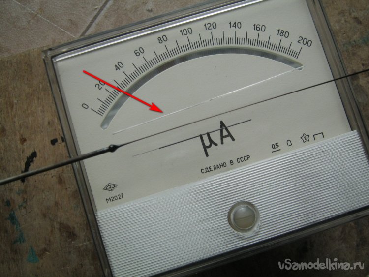 После установки новой, относительно длинной и тяжелой стрелки, имеющийся весьма скромный противовес (видно например на фото 9, 12) конечно перестал уравновешивать подвижную систему прибора. В большом горелом измерителе такой элемент длиннее и раздвоенный – позволяет при настройке напаивать капельки припоя в двух местах (Фото 18).