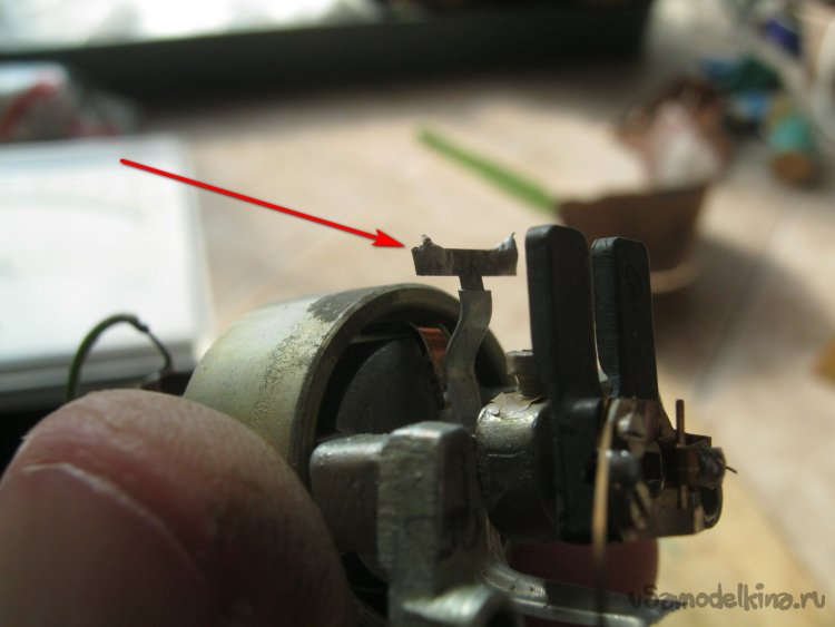 Фото 21. Арретир большого и маленького прибора. Пластиковый палец много толще нужного и в механизм не влезает.