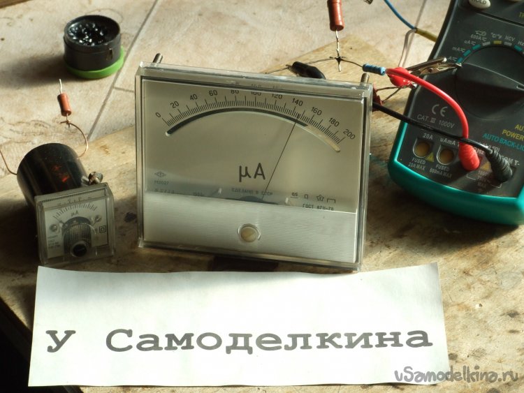Фото 2. Исходные приборы. Миниатюрный измеритель в руках – специализированный от одной из секций промышленного стоечного БП, отсюда шкала.