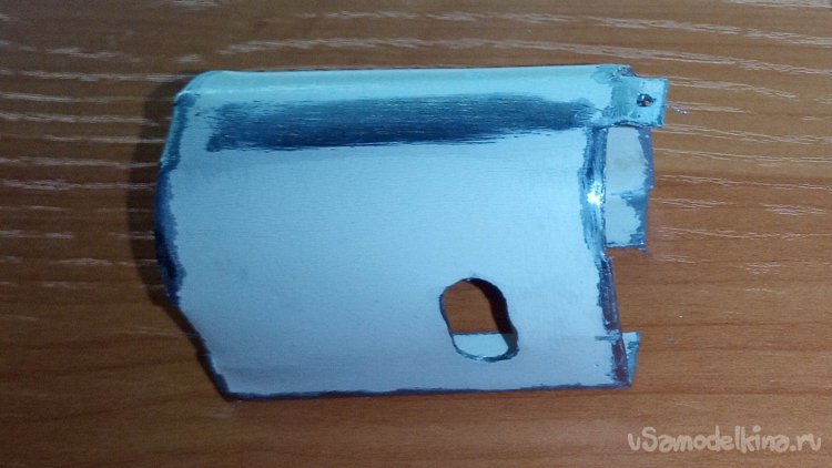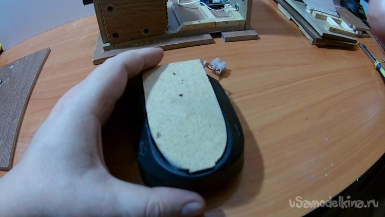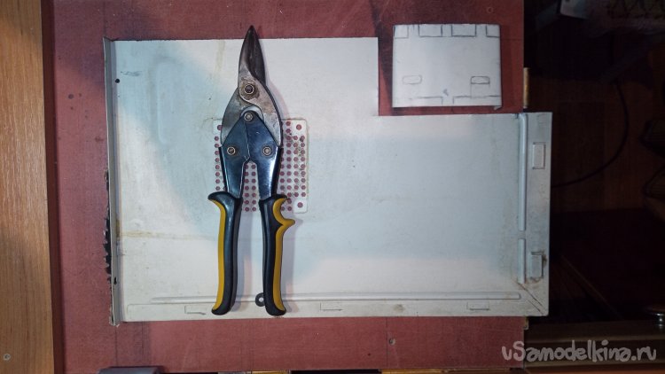 Скопировал устройство крепления аккумулятора путём склеивания нескольких деталей, которые вырезал из оргалита.