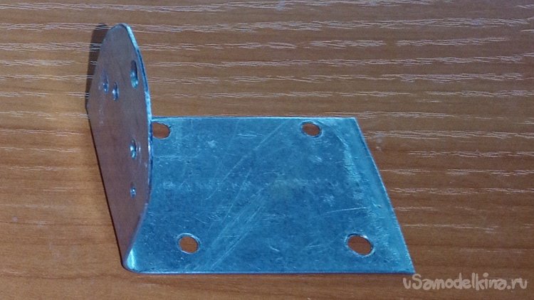 Потом взял металлическую пластину, загнул под 90 градусов и просверлил отверстия для крепления. Она будет служить основой этой части конструкции.