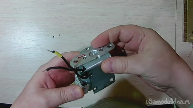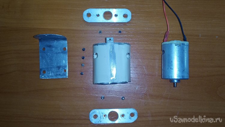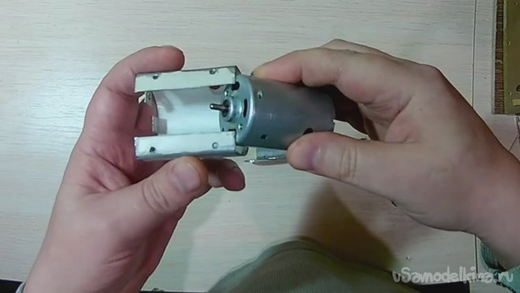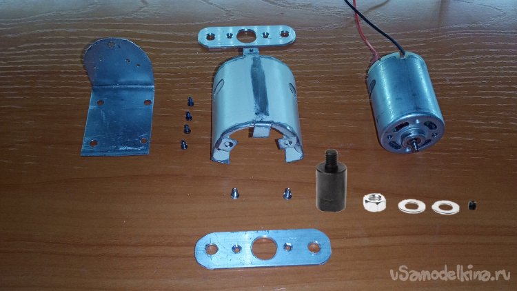 Переходим к сборке данной части конструкции. Вставляем мотор в полукруглую металлическую часть корпуса.