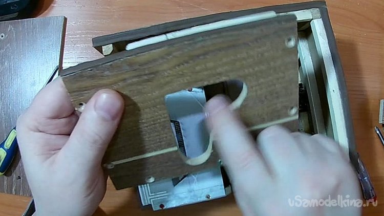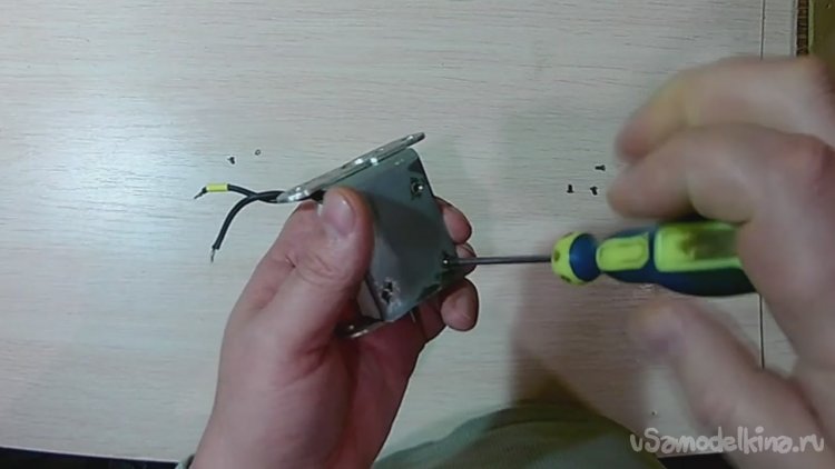 Фиксируем маленькими винтами основу к полукруглой металлической части корпуса.