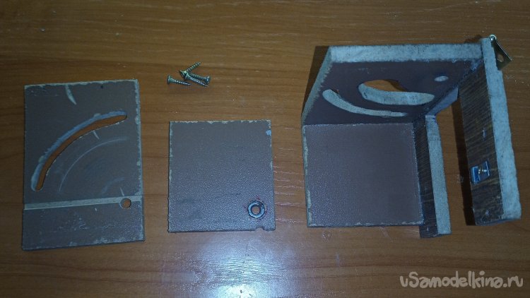 В одной из боковых стенок установил гайку для крепления рычага регулировки для функции наклона под 45 градусов. Во второй стенке ошибочно установил гайку, она там не нужна, в процессе монтажа заменил эту деталь корпуса.