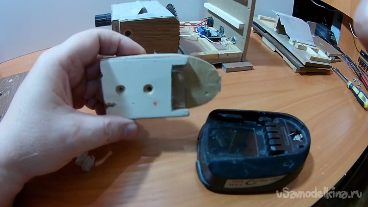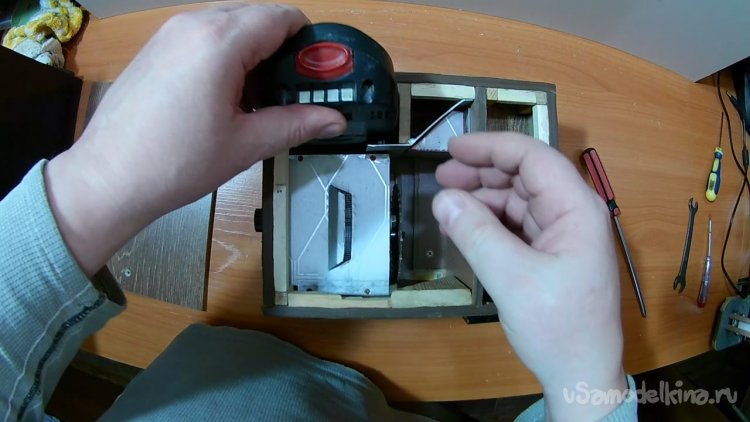 А вот как устанавливается аккумулятор в корпус станка.