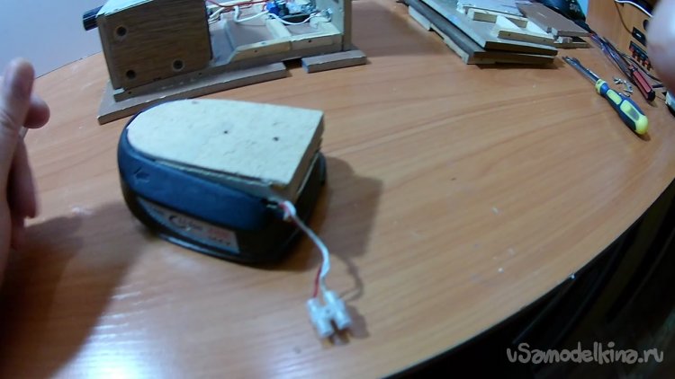 Далее надо было придумать, как соединить всю эту конструкцию с аккумулятором от шуруповёрта.