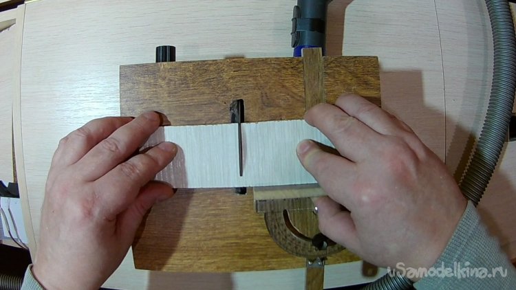 Отпилил из того же ламината, что и верхняя часть станка, полосу шириной паза в столе.