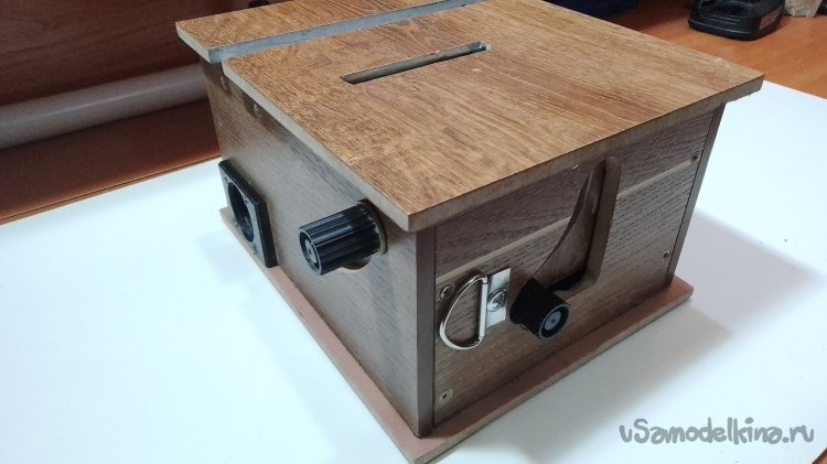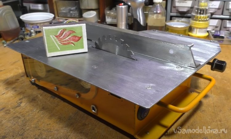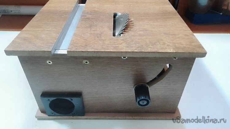 Ну вот в общих деталях, получилась такая вот самоделка. Считаю такой станок будет полезен для небольших работ с тонкими древесно-стружечными материалами, типа МДФ, ДВП, ДСП не толще 14 мм. А так же на ней можно распилить пластик, алюминий и т.д.