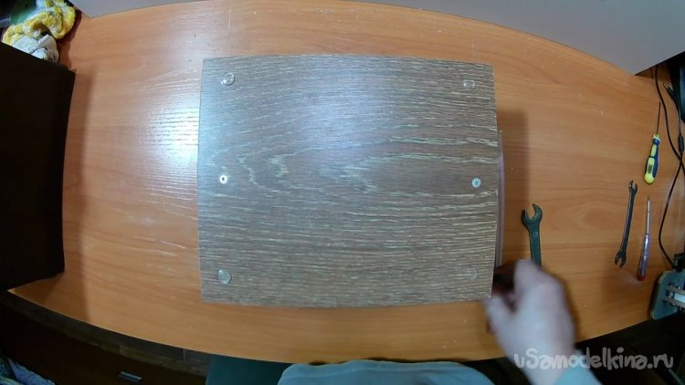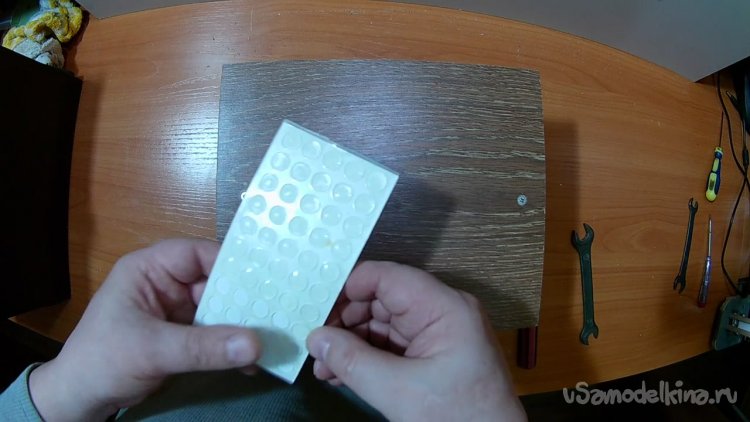 Для того, чтобы станок не скользил и не вибрировал по поверхности, приклеил к нижней крышке прозрачные силиконовые демпферы.