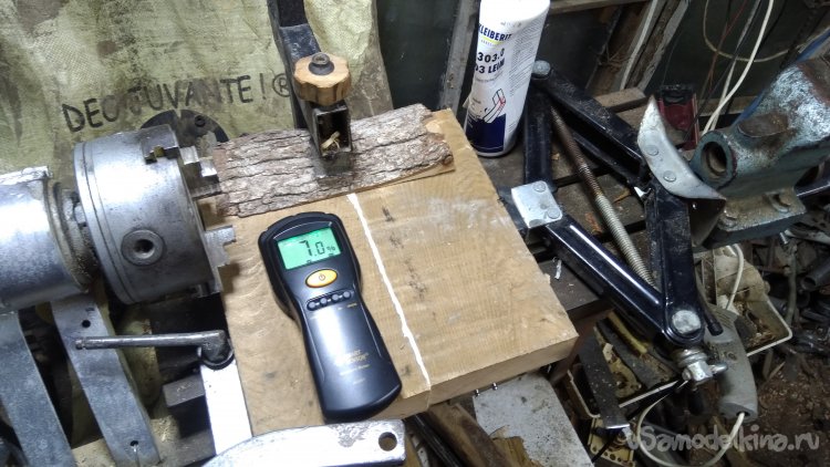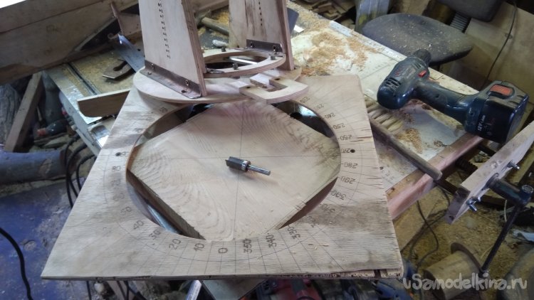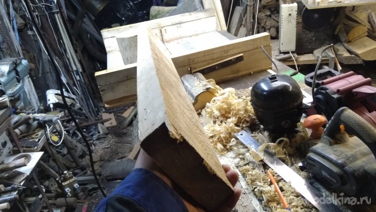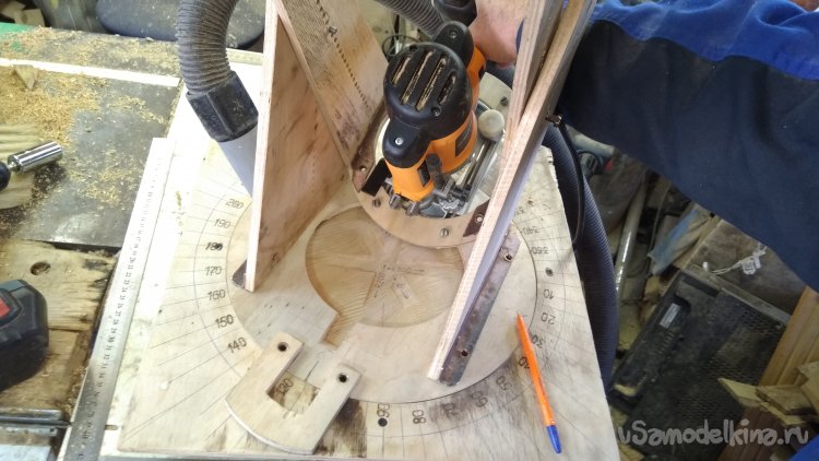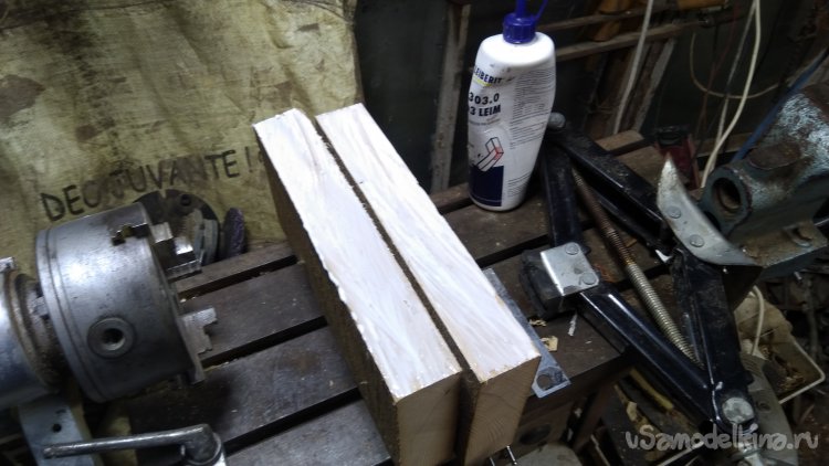 В приспособление для выборки материала из заготовки установил склеенные доски
