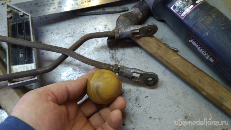 Приварил шток от амортизатора и накрутил на него шарик, получилась удобная рукоятка для поворота маятникового фрезера.