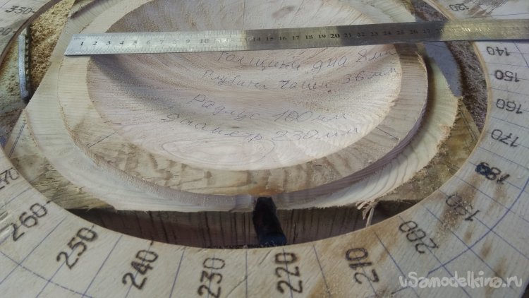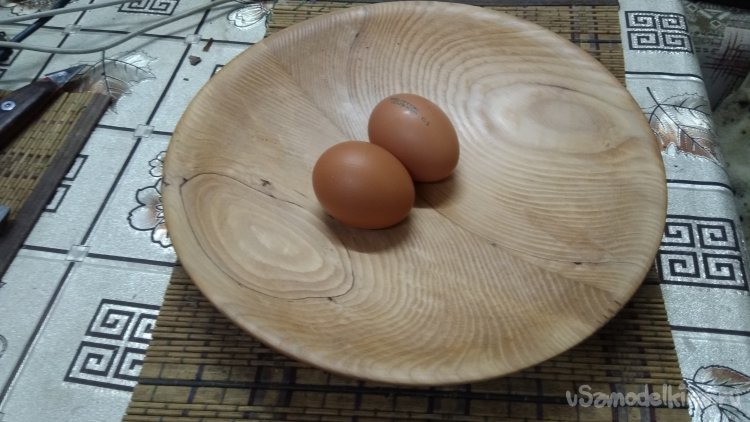 Доска сороковка, обычная сосна, но давно у меня она лежала, высохла полностью. Смоляных капелек не видно, и процессе обработки смоляные карманы не попались. У меня есть несколько деревянных тарелок, но захотелось сделать чуть побольше, для хлеба или фруктов например.