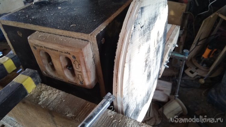 Попробовал закрепить планшайбу на шлифовальный станочек и проточить, но мотора 800 ватт явно мало