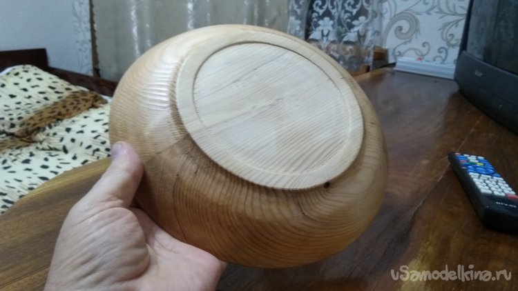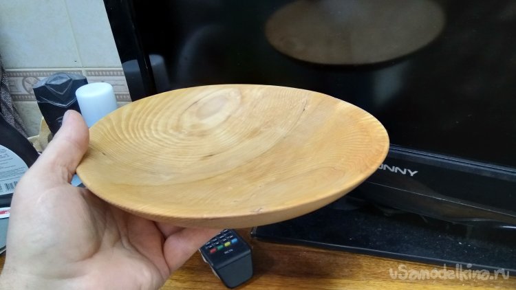Готово. Тарелочка весит 300 граммов. Стенки толстые, 15 мм. Донышко 7 мм.