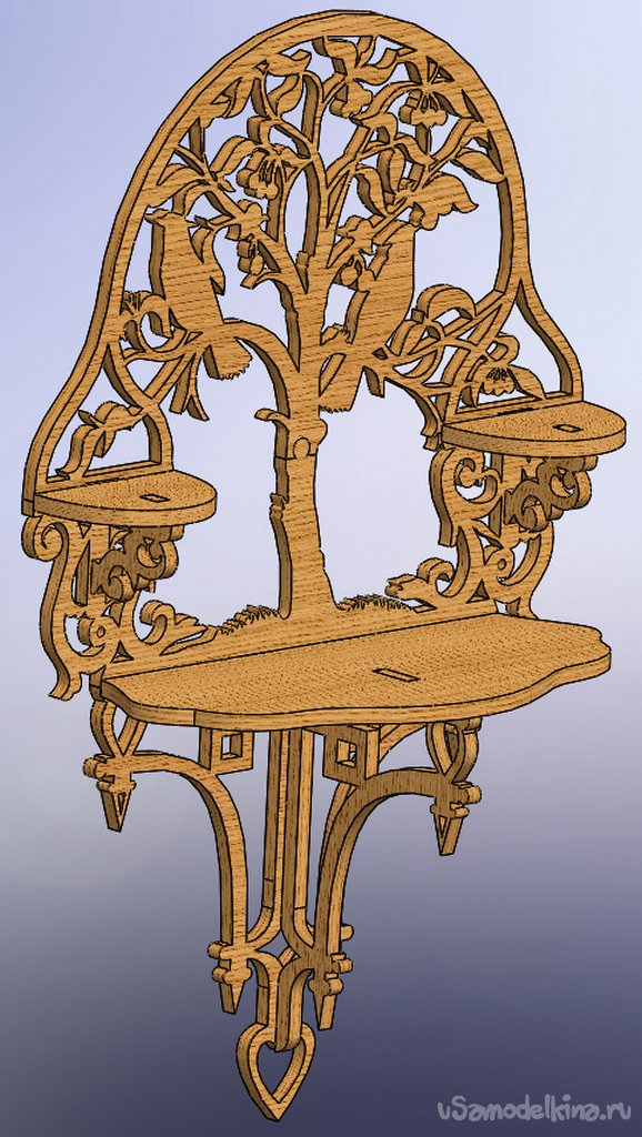 На днях решил сделать приятное на работе. А именно изготовить резную полочку на стену в нашей новой столовой. Для начала поискал что то интересное в интернете. И, о!, чудо какое то )))), подобрал интересный вариант.