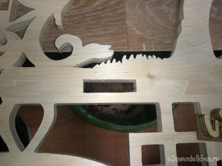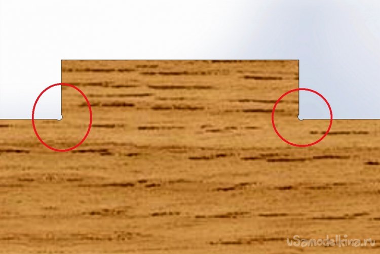 Если вы заметили, я учёл итог работы цилиндрической фрезы. При вырезании внутреннего угла прямой угол никогда не получится, а будет радиус равный половине диаметра фрезы. Поэтому в таких местах делаю небольшие зарезы, что бы при сборке деталей в единую конструкцию не пришлось работать напильником или надфилем. А после сборки такие зарезы практически не видны.