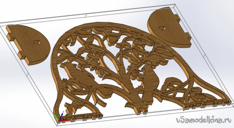 С оставшимися деталями проделываю подобные действия, только уже не разбивая их на составные части. Единственно учитываю размеры и положение посадочных мест.