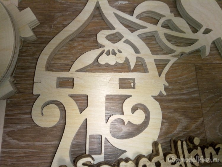 Всё готово для вырезания. На рабочий стол станка закрепляю лист фанеры, подходящий по размеру для детали. Устанавливаю нужную фрезу в цангу шпинделя (у меня в данном случае фреза Ф1,5мм). Выставляю машинный "0" перемещая фрезу по осям XYZ. В итоге получаю первые детальки: