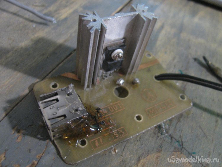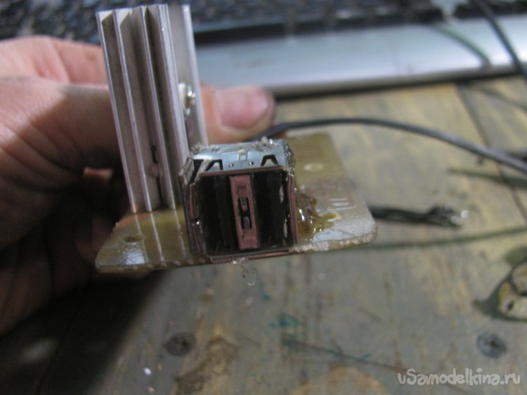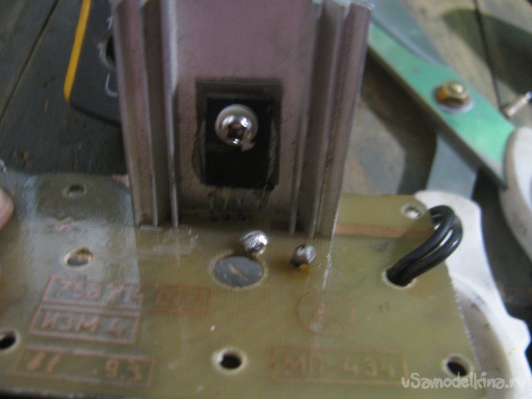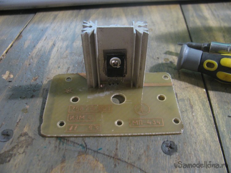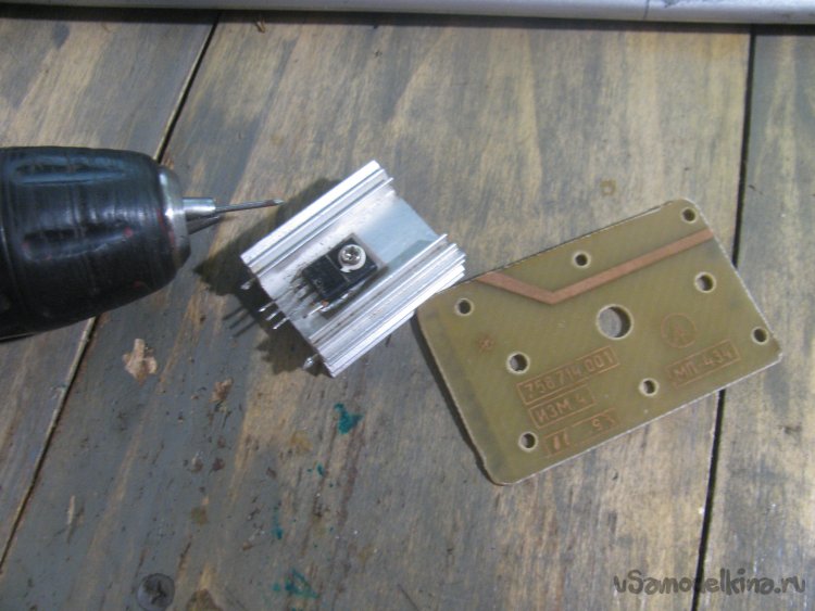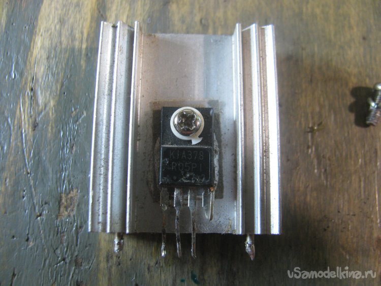 Также добываем радиатор, эти схемы выделяют много тепла, так что лучше брать радиатор побольше. Прикручиваем миросхему через термопасту или специальную подложку, за неимением и того и того, намазываем немного солидола.