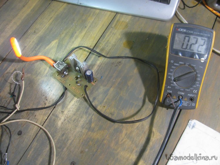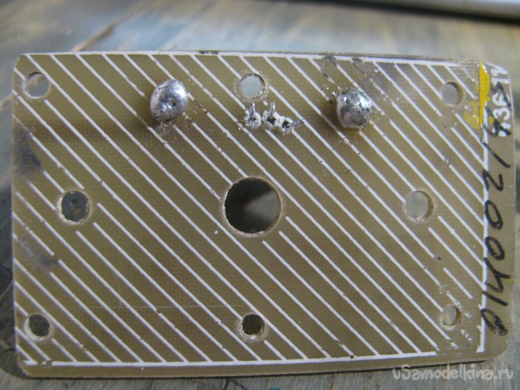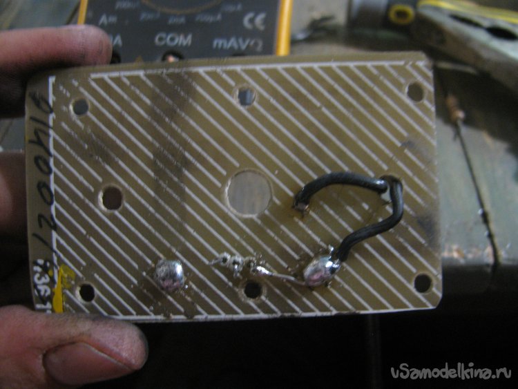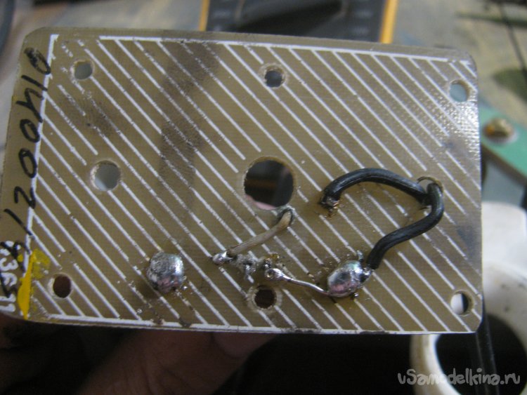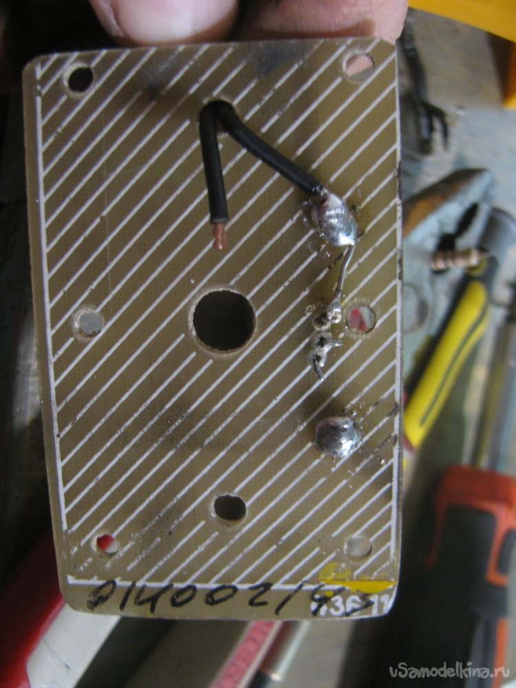 Сделал импровизированный предохранитель из самого тонкого волоска проволоки, который нашел. Это на случай пробоя микросхемы.