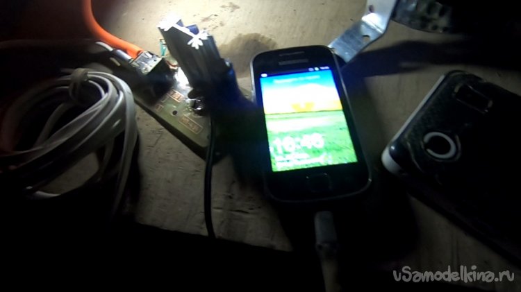 Далее я провел испытания со своим импровизированным генератором из мотокосы и шуруповерта. Фонарик светит стабильно, Power bank также показывает зарядку, а вот телефон заряжается рывками, все еще есть сильные пульсации и нужны конденсаторы. Этот генератор долго не прожил, отказала задняя втулка моторчика.