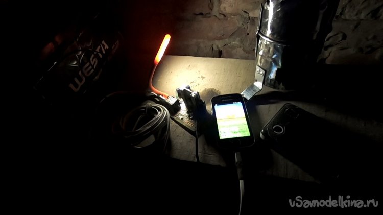 На выходе получаем стабильные 5В, можно включить фонарик USB.
