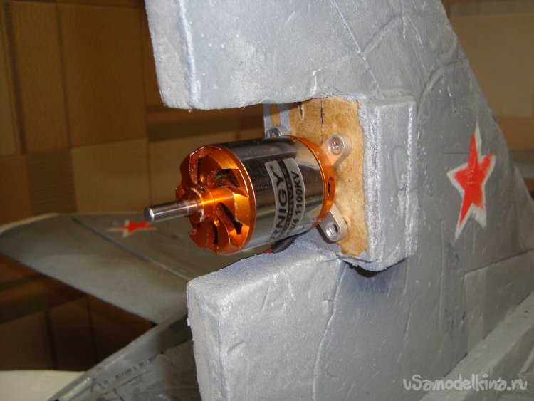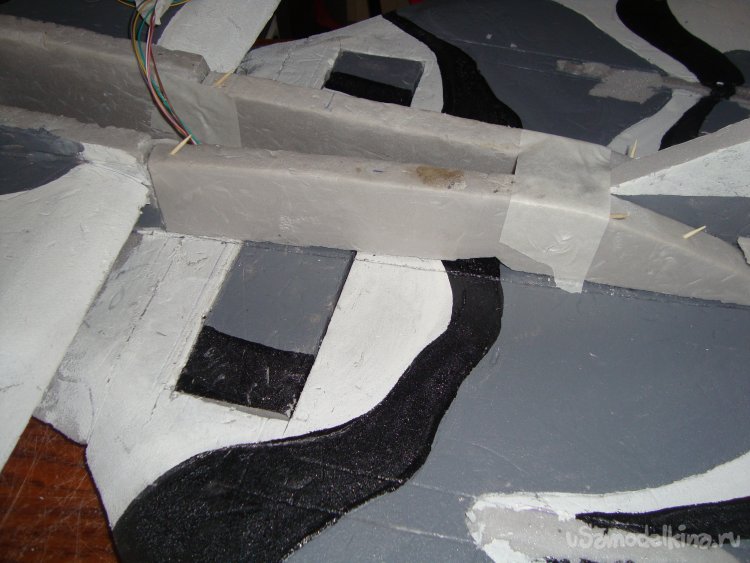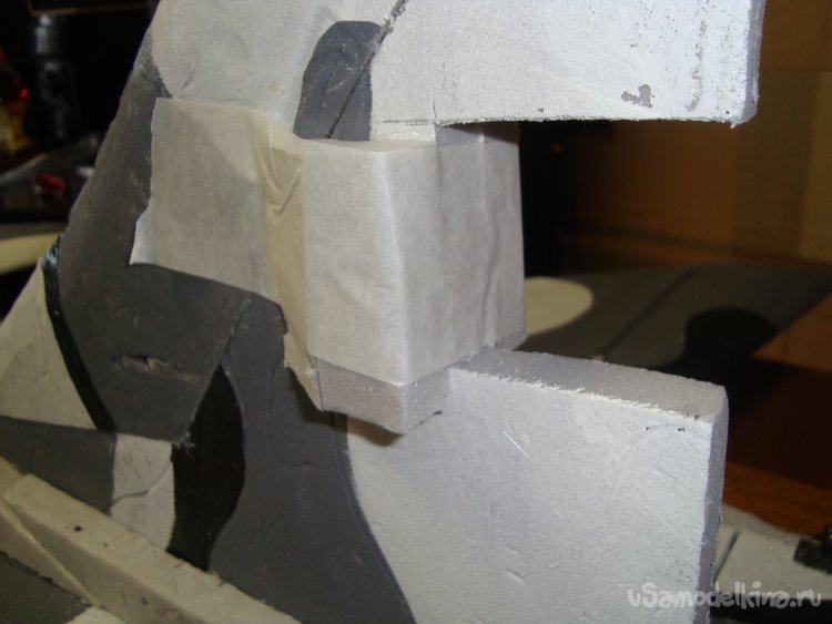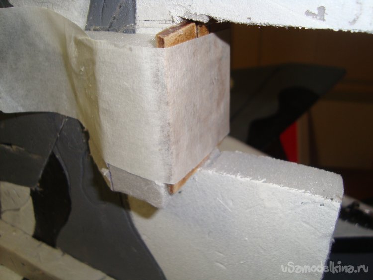 Вклеил кусок утеплителя, из которого изготовлена вся модель, в вырез, в котором размещался винт.