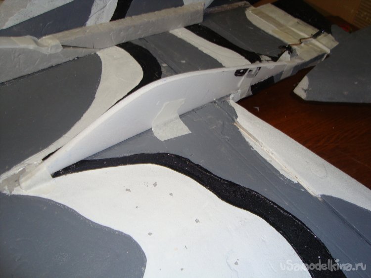 После такой переделки, срочно потребовалось укрепить несущую поверхность всего крыла. Тем более, что мотор я решил перенести в хвостовую часть модели и установить его на киль.