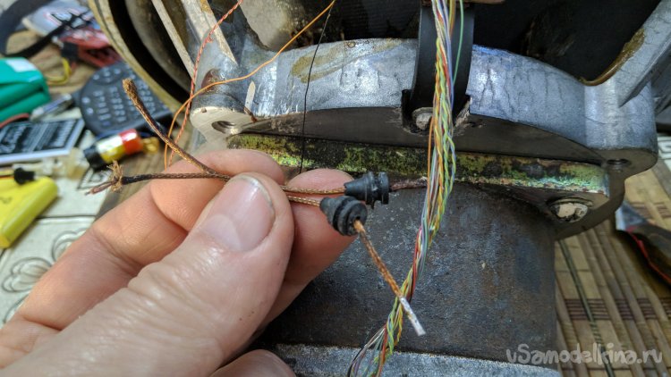 Усталостные трещины в металле, провода отломались, держатся только на текстильных нитках внутри косичек.