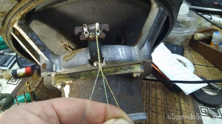 Но вернёмся к колонкам. За сорок лет медные подводящие провода к диффузорам поистрепались и стали терять контакт. Там ведь специальные косички используют, с нитями текстильными внутри медной оплётки.