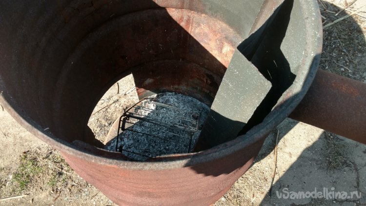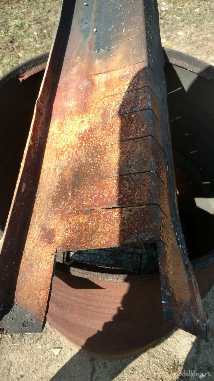 И ''вишенка на торт'' вставка-воздухораспределитель, которая распределяет воздух по всему объёму сжигаемого материала. Сделана из какого-то старого желоба.