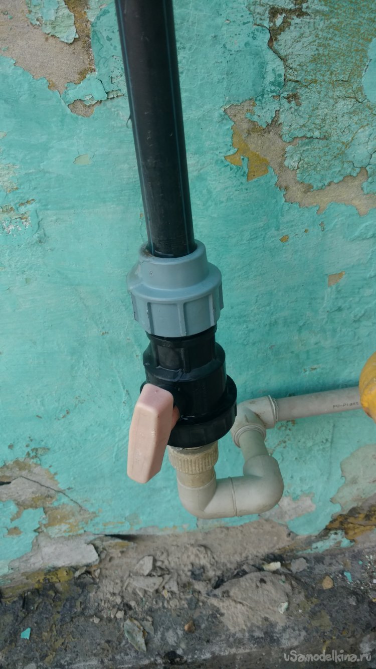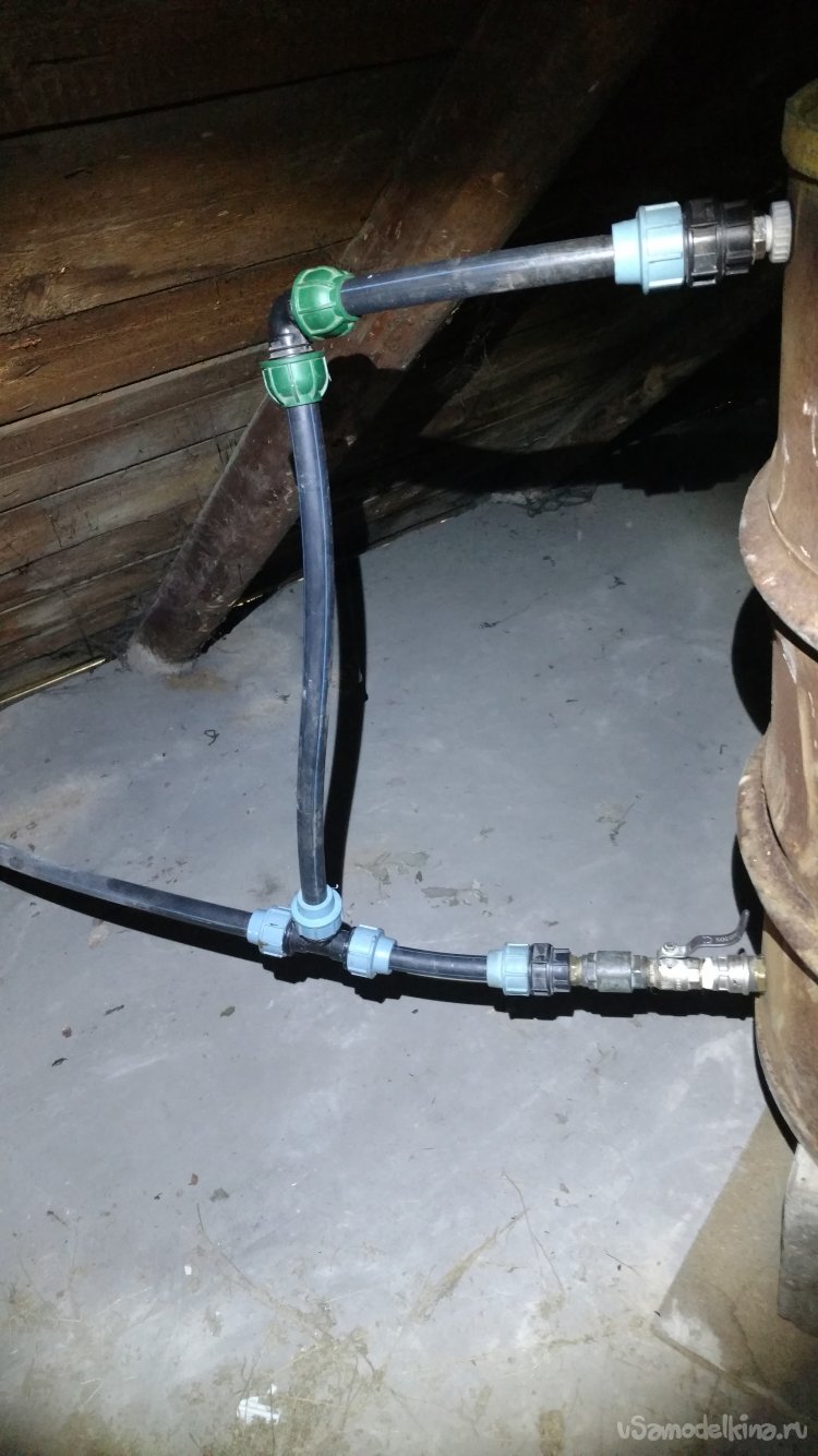 Трубы в моём случае были диаметром 25 мм, как полипропилен так и полиэтилен и приятная неожиданность, давления воды хватило для включения двухконтурного котла для нагрева горячей воды через него. Вот таким простым способом можно обеспечить себя запасом воды.