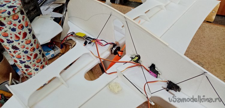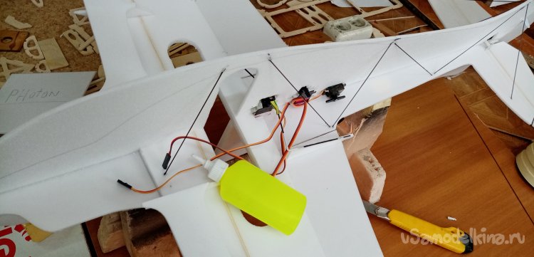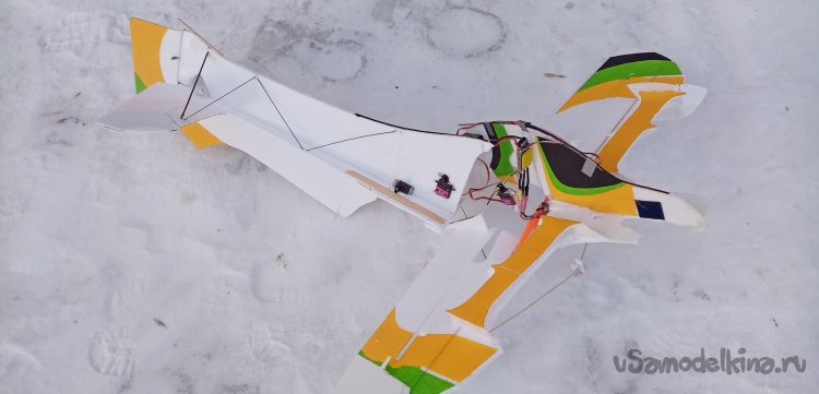 Не захотелось полностью отходить от этого проекта. Тем более все элементы проработаны и подогнаны. Навесное оборудование работает на своих местах хорошо. Поэтому принято решение о продолжении проекта с небольшими модернизациями. Разобрал самолетик. Аккуратно снял оборудование и оставил обломки для последующей подгонки элементов на новом самолетике.
