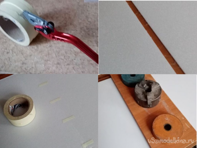 Фиксирую малярным скотчем с двух сторон и под пресс.