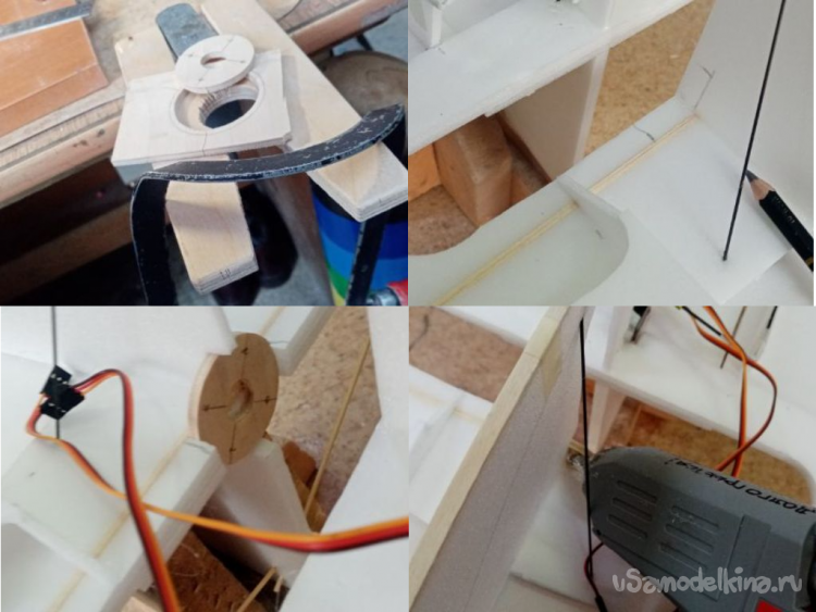 Прорезаю отверстие вертикальной качалки на руль высоты.