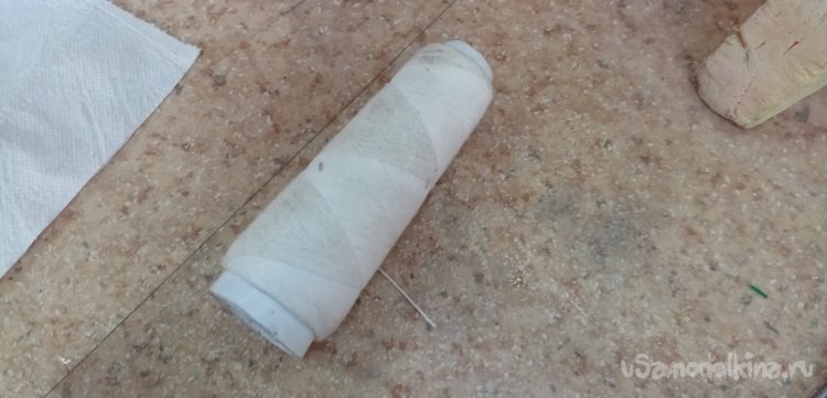 Применяю достаточно широкий скотч, разрезанный вдоль на полоски нужного мне размера. Понятно, что разрезать его полностью до самой втулки не получается. Клей налипает на нож и все вязнет. Прорезаю на небольшую глубину в несколько миллиметров. По мере расходования полоски режу еще.