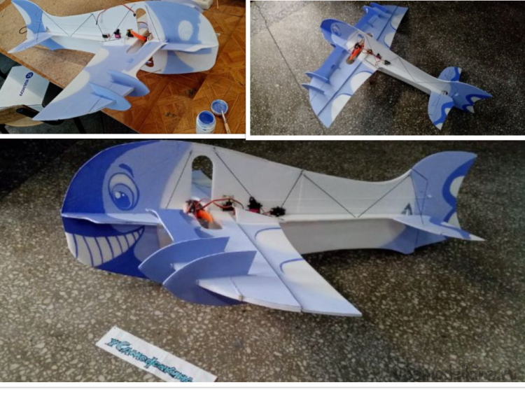 Проводка управления завершена, мотор регулятор установлены, опробовано. Можно приступать к раскраске под мультяшного кита. Пробую новый вариант нанесения краски. Давно имел дело с водоэмульсионкой и тонерами. Раскрашивал таким составом детский клуб. И даже работал намешанной краской через аэрограф.