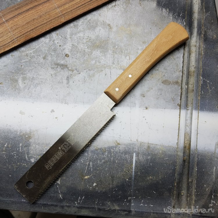 Далее, за неимением моей любимой обушковой пилы со стуслом, мне пришлось пилить заготовки ручной японской ножовкой. Оказалось даже удобнее.