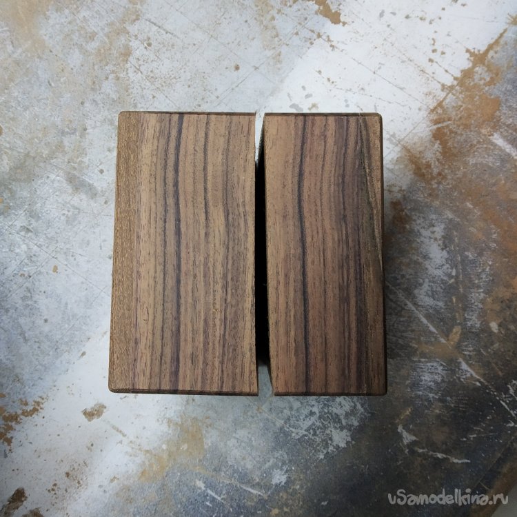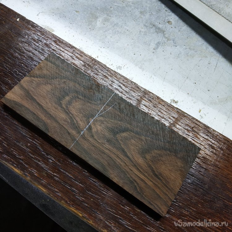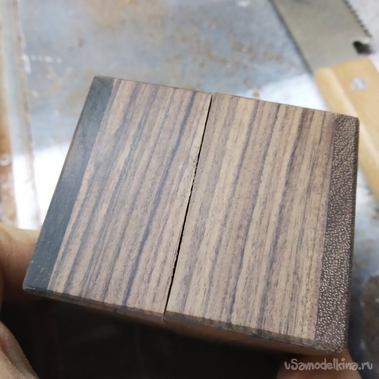 Предварительно я разметил эбеновую и сапелевую заготовки на 5/7 см.