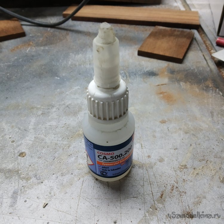 Склейку я проводил на цианоакрилатный клей, или же, космофен. Суперклей, в общем. Что бы там не распинались на тему столярных клеев, космофен, как по мне, эффективней, по крайней мере, в прохладном помещении, где ПВА просто может не застыть. А в мастерской у меня +15 градусов с учетом печки. Скорее бы весна нормальная уже.